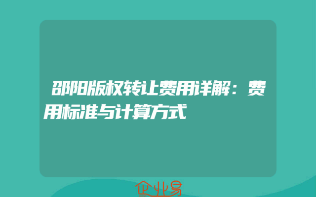 - 邵阳版权转让费用详解:费用标准与计算方式