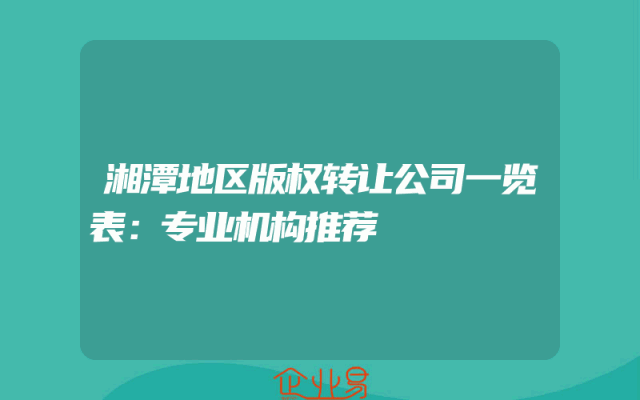 - 湘潭地区版权转让公司一览表:专业机构推荐
