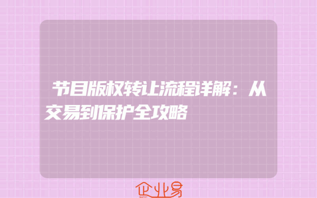 - 节目版权转让流程详解:从交易到保护全攻略
