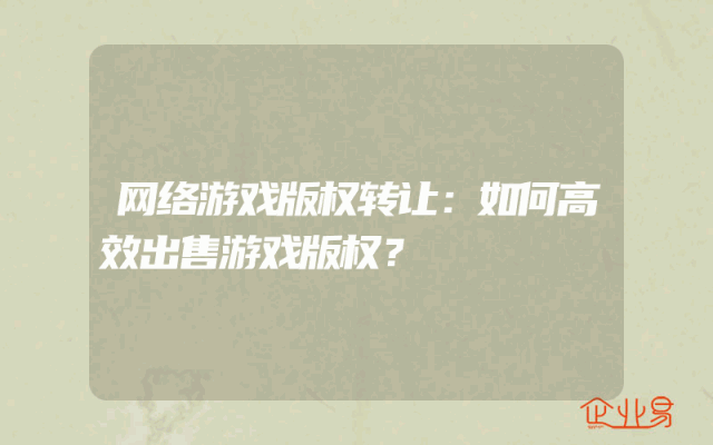 - 网络游戏版权转让:如何高效出售游戏版权?