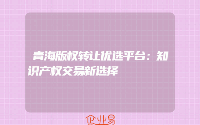 - 青海版权转让优选平台:知识产权交易新选择