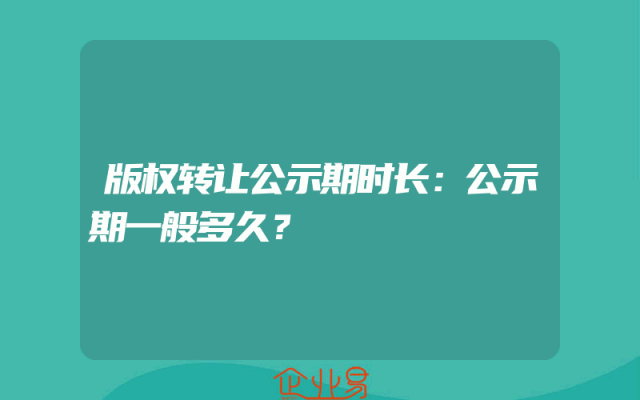 - 版权转让公示期时长:公示期一般多久?
