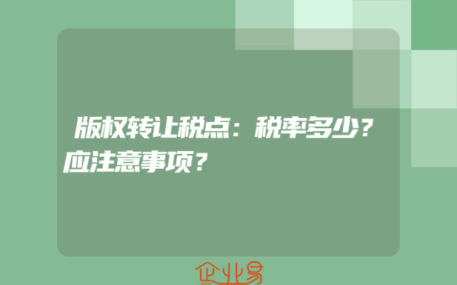 - 版权转让税点:税率多少?应注意事项?