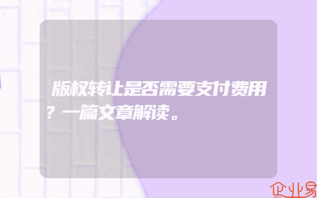 - 版权转让是否需要支付费用?一篇文章解读。