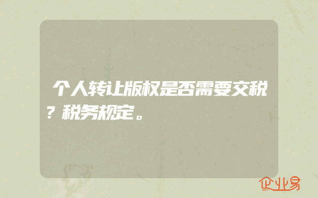 - 个人转让版权是否需要交税?税务规定。