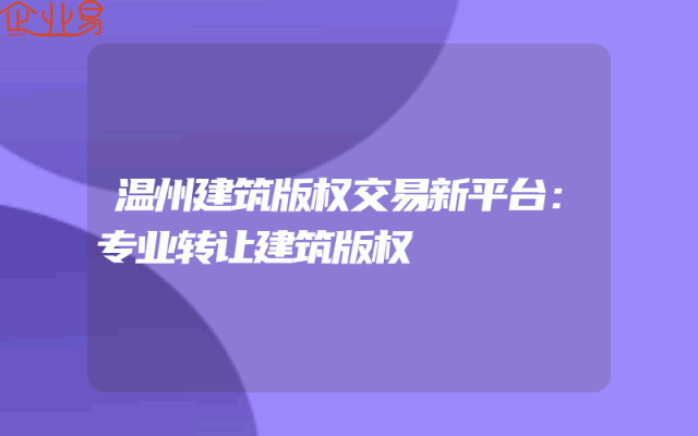 - 温州建筑版权交易新平台:专业转让建筑版权