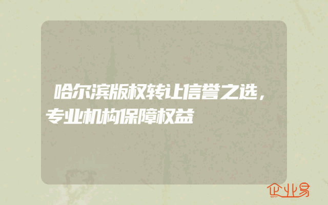 - 哈尔滨版权转让信誉之选,专业机构保障权益