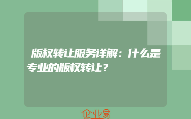 - 版权转让服务详解:什么是专业的版权转让?