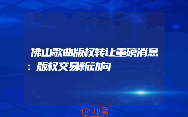 - 佛山歌曲版权转让重磅消息:版权交易新动向