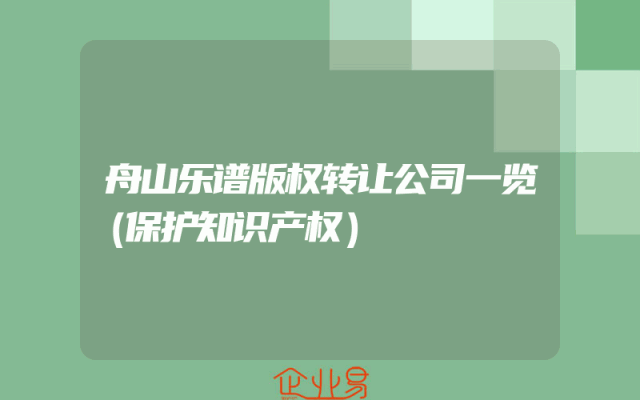 - 舟山乐谱版权转让公司一览(保护知识产权)