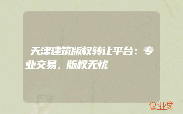 - 天津建筑版权转让平台:专业交易,版权无忧