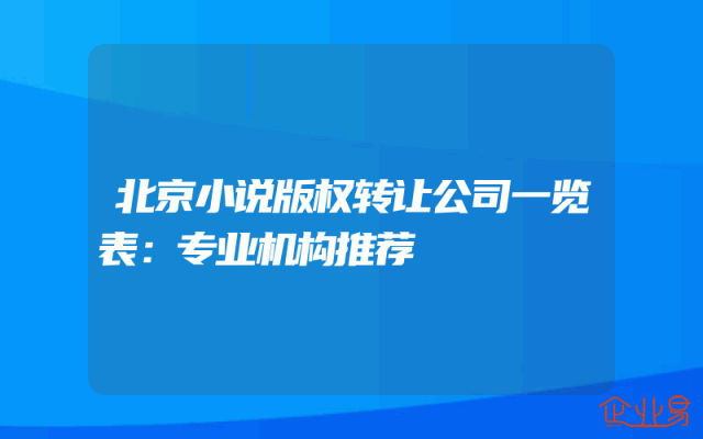- 北京小说版权转让公司一览表:专业机构推荐