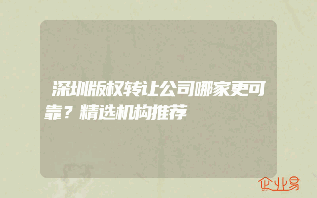 - 深圳版权转让公司哪家更可靠?精选机构推荐
