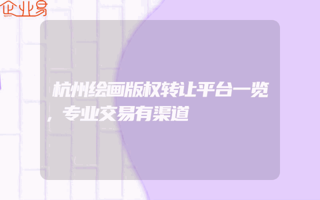- 杭州绘画版权转让平台一览,专业交易有渠道