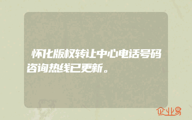 - 怀化版权转让中心电话号码咨询热线已更新。