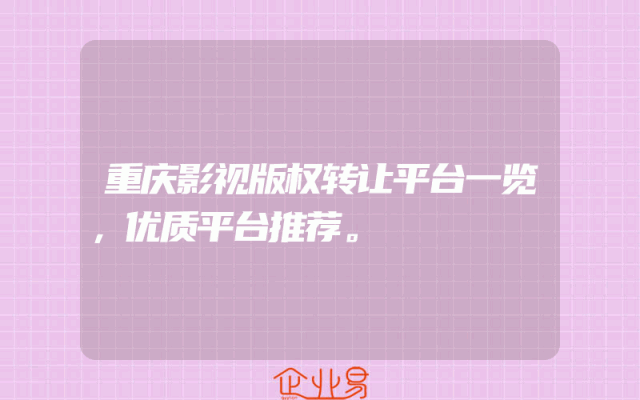 - 重庆影视版权转让平台一览,优质平台推荐。