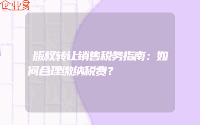 - 版权转让销售税务指南:如何合理缴纳税费?