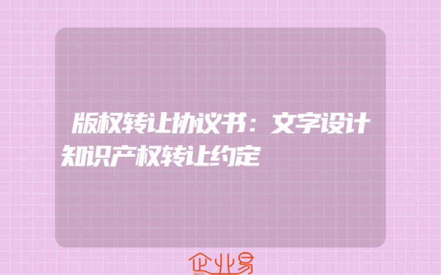 - 版权转让协议书:文字设计知识产权转让约定一、转让方与受让方的明确身份在版权转让协议书中,首先需要明确转让方和受让方的身份。转让方是拥有文字设计知识产权的个人或组织,而受让方则是希望获得该知识产权使用权的另一方。双方需在协议中清楚注明名称、地