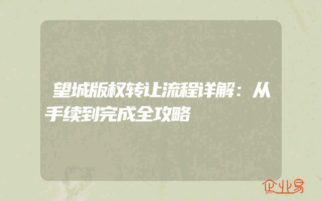 - 望城版权转让流程详解:从手续到完成全攻略一、了解版权转让基本概念在开始版权转让流程之前,首先需要明确版权转让的含义及其重要性。版权转让是指版权人将其作品的著作权中的部分或全部权利,以一定的条件和方式,授权给他人使用或处置的行为。这不仅是对知