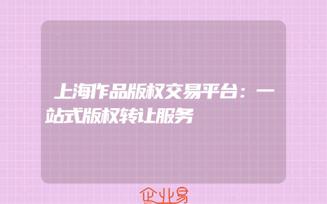 - 上海作品版权交易平台:一站式版权转让服务一、引言随着知识产权保护意识的加强,版权转让成为越来越多创作者和企业的选择。上海作品版权交易平台作为一个专业的版权交易服务平台,致力于提供一站式的版权转让服务,为创作者和企业提供一个安全、便捷、高效的