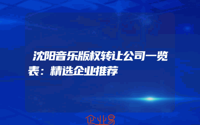 - 沈阳音乐版权转让公司一览表:精选企业推荐