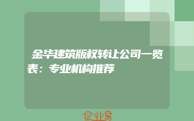 - 金华建筑版权转让公司一览表:专业机构推荐