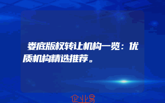 - 娄底版权转让机构一览:优质机构精选推荐。