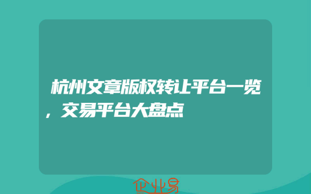 - 杭州文章版权转让平台一览,交易平台大盘点