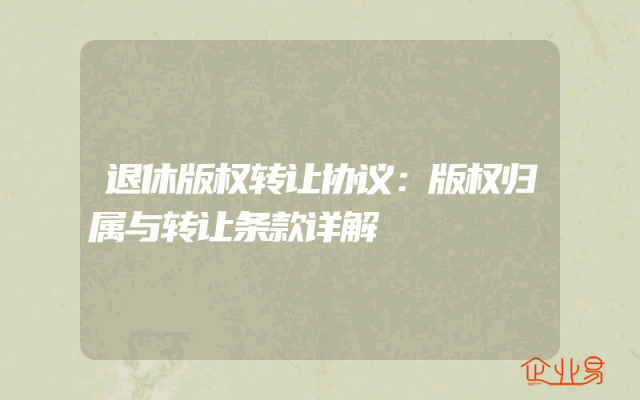 - 退休版权转让协议:版权归属与转让条款详解一、版权归属原则在退休版权转让协议中,首先需明确版权归属的原则。版权,也称为知识产权,是指创作者对其创作的文学、艺术和科学作品所享有的专有权利。在版权转让的过程中,原始版权归属是核心问题。通常情况下,