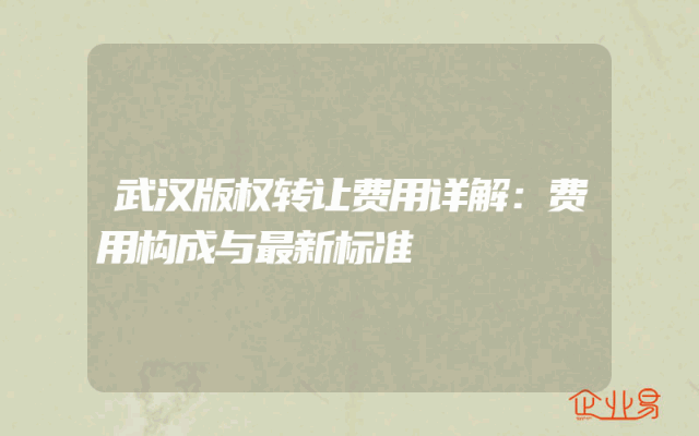 - 武汉版权转让费用详解:费用构成与最新标准