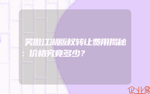 - 笑傲江湖版权转让费用揭秘:价格究竟多少?