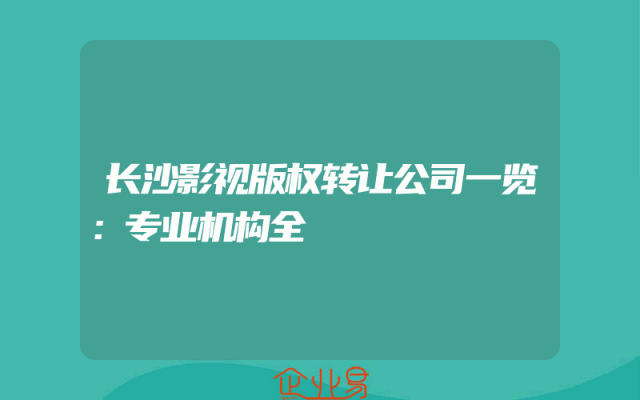 - 长沙影视版权转让公司一览:专业机构全