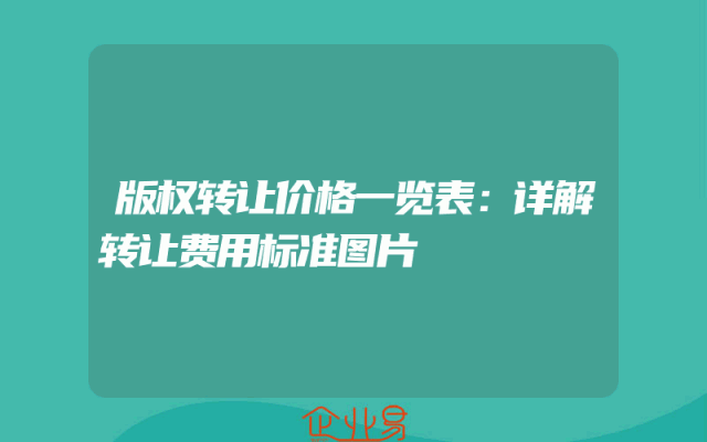 - 版权转让价格一览表:详解转让费用标准图片