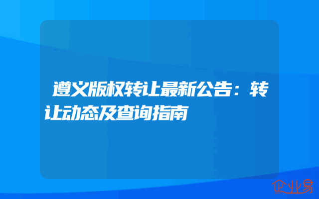 - 遵义版权转让最新公告:转让动态及查询指南