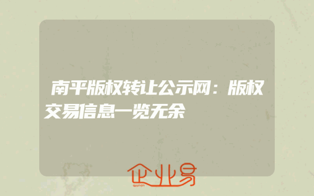 - 南平版权转让公示网:版权交易信息一览无余
