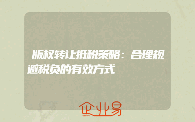 - 版权转让抵税策略:合理规避税负的有效方式
