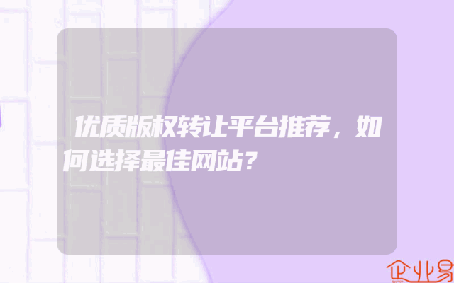- 优质版权转让平台推荐,如何选择最佳网站?