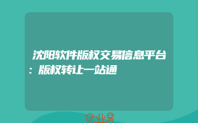 - 沈阳软件版权交易信息平台:版权转让一站通