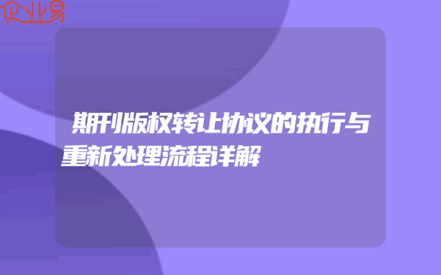 - 期刊版权转让协议的执行与重新处理流程详解一、版权转让协议的概述期刊版权转让协议是出版过程中重要的一环,它涉及到知识产权的保护、作者权益的维护以及出版方的权益分配。版权转让协议的执行是为了确保期刊内容的合法性和正当使用,对版权归属和授权使用做