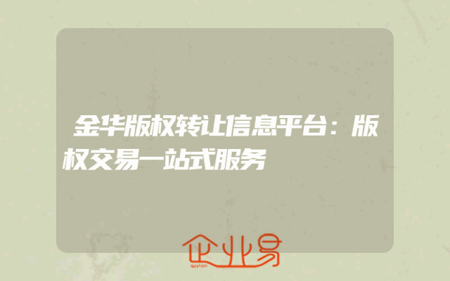 - 金华版权转让信息平台:版权交易一站式服务一、引言随着知识经济时代的到来,版权保护和版权交易成为创意产业发展的关键所在。为满足广大版权持有者与业界人士的需求,金华版权转让信息平台应运而生,旨在为广大用户提供版权交易一站式服务。这个平台集版权登