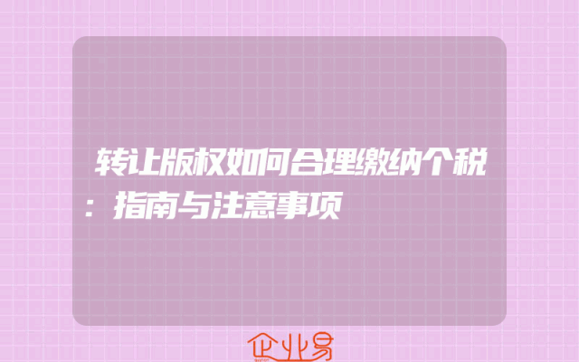 - 转让版权如何合理缴纳个税:指南与注意事项
