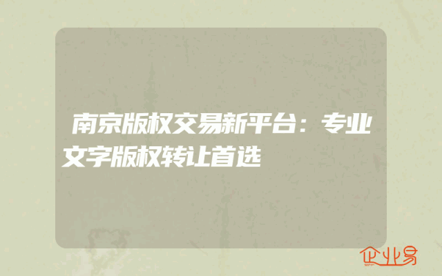 - 南京版权交易新平台:专业文字版权转让首选一、平台概述随着知识产权保护意识的加强,南京版权交易新平台应运而生,成为专业文字版权转让的首选平台。该平台立足于南京,辐射全国,致力于为广大作者和版权所有者提供一个安全、便捷、高效的版权交易环境。二、