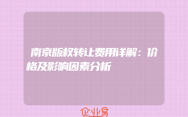 - 南京版权转让费用详解:价格及影响因素分析一、版权转让费用的概述在知识产权领域,版权转让费用是交易过程中重要的经济环节。南京作为江苏省的省会城市,拥有众多的文化企业和创作者,版权交易频繁。版权转让费用的高低受多种因素影响,涉及的因素包括作品类