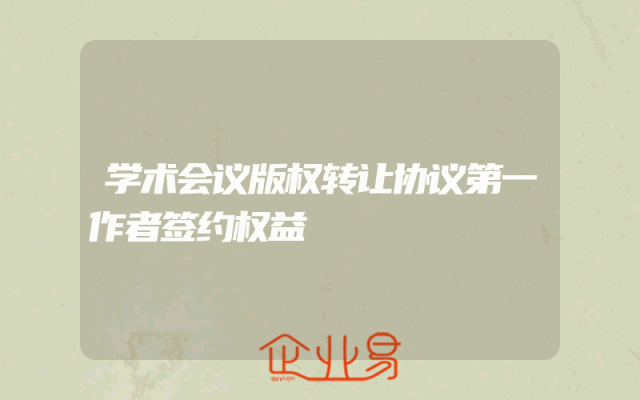 - 学术会议版权转让协议第一作者签约权益解析一、版权转让协议概述在学术会议上,版权转让协议是保障各方权益的重要文件。对于第一作者而言,了解版权转让协议的内容及其意义至关重要。版权转让协议规定了作品的使用范围、作者的权利与义务、版权归属等