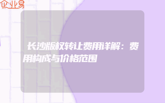 - 长沙版权转让费用详解:费用构成与价格范围一、版权转让费用的基本构成在长沙,版权转让费用主要由几个部分构成。首先,需要考虑到版权登记的费用,这是版权转让过程中的基础费用之一。其次,涉及到版权评估的费用,这是对版权价值进行专业评估的重要环节。再
