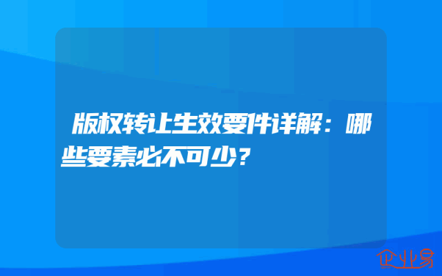 - 版权转让生效要件详解:哪些要素必不可少?一、版权转让的基本含义版权转让是指版权人将其享有的著作权中的部分或全部权利,依法定程序转移给他人享有。这种转让具有法律效力,受到法律保护。版权转让是知识产权交易的一种重要形式,有助于促进文化作品的传播