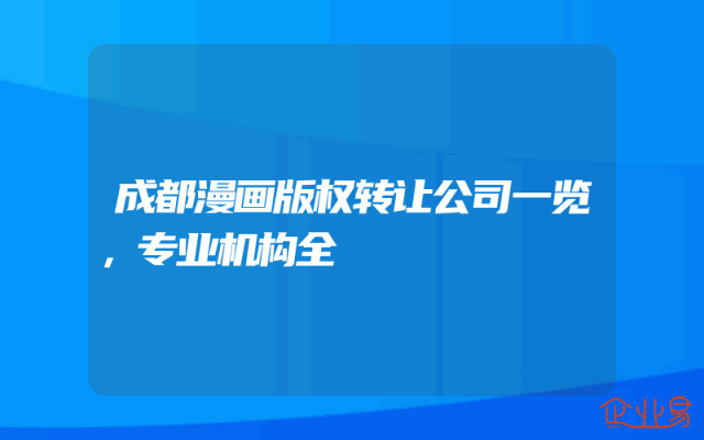 - 成都漫画版权转让公司一览:专业机构全解析一、成都漫画版权转让市场概况作为西部地区的重要城市,成都的漫画版权转让市场近年来逐渐兴起。随着文化产业的繁荣发展,越来越多的漫画创作者和投资者开始关注这一市场