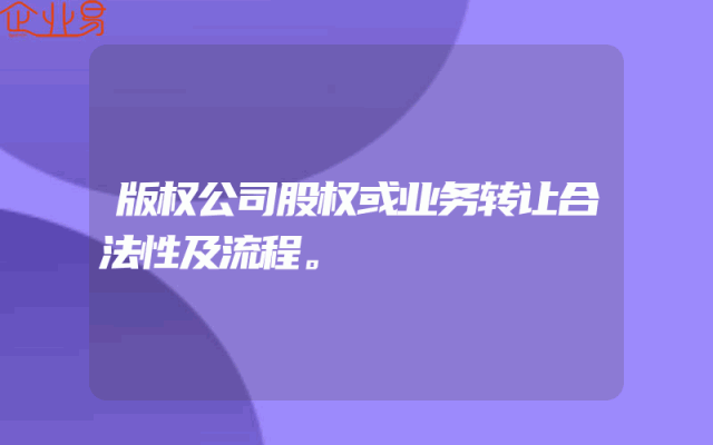 - 版权公司股权或业务转让合法性及流程解析一、引言在当前经济全球化的大背景下,知识产权的重要性日益凸显。版权公司作为知识产权领域的重要参与者,其股权或业务转让涉及到多方面的法律问题。本文将重点探讨版权公司股权或业务转让的合法性及具体流程。二、股
