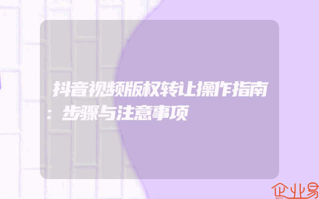 - 抖音视频版权转让操作指南:步骤与注意事项