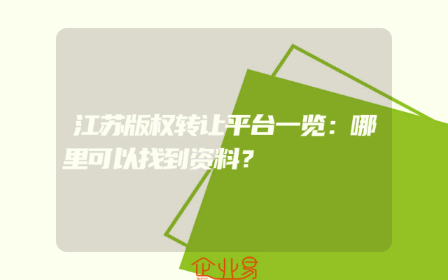 - 江苏版权转让平台一览:哪里可以找到资料?